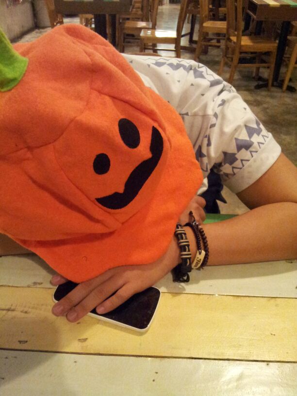 Crazy pumpkin with a porno Simpson t-shirt. Shui lai de?