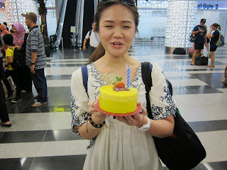 Made her wear the doggy nose. Birthday cake was the popular Kueh Lapis (??????) from Batam we bought at Nagoya mall..