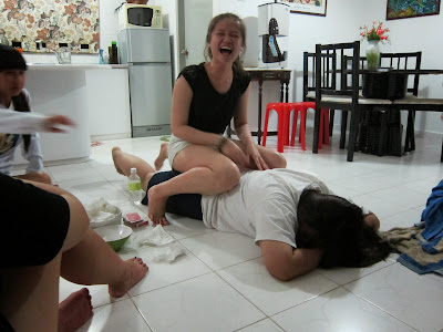 Phil and I trying to train Hao not to be so shy with girls (like, us, cause we are more aggressive, in some ways.....)