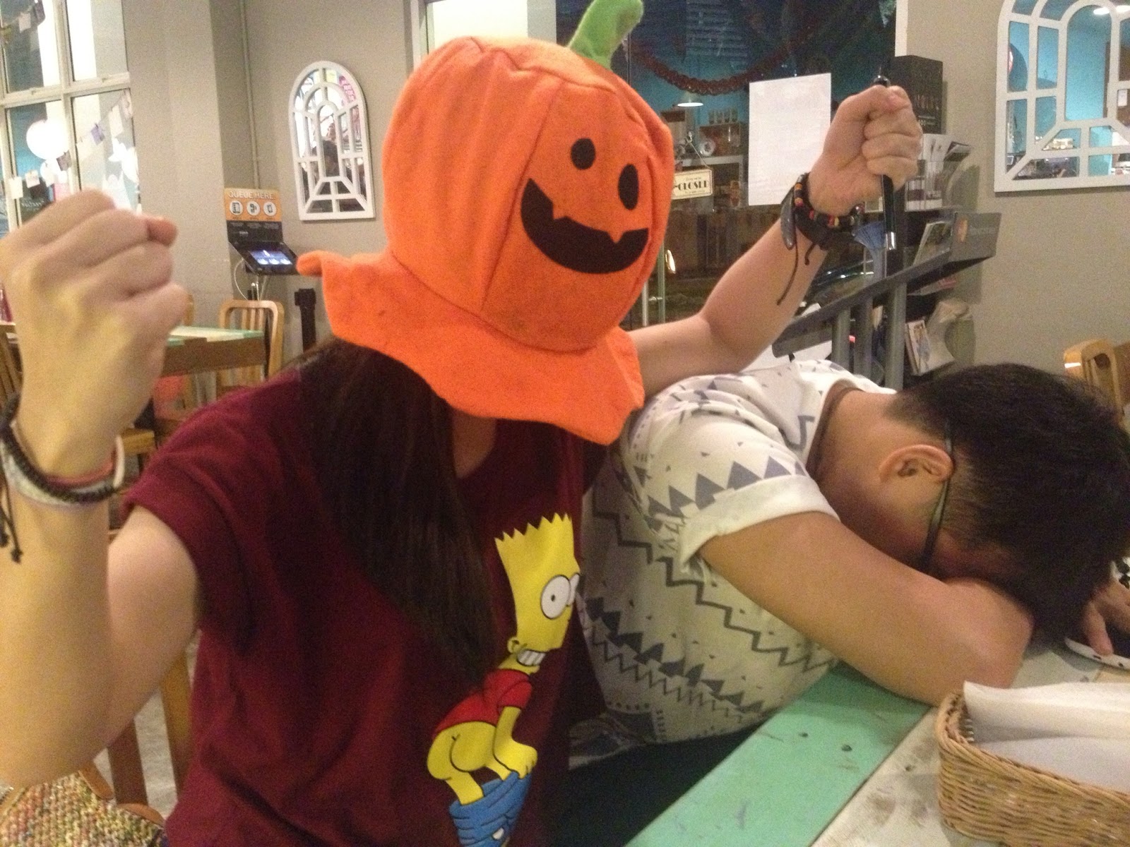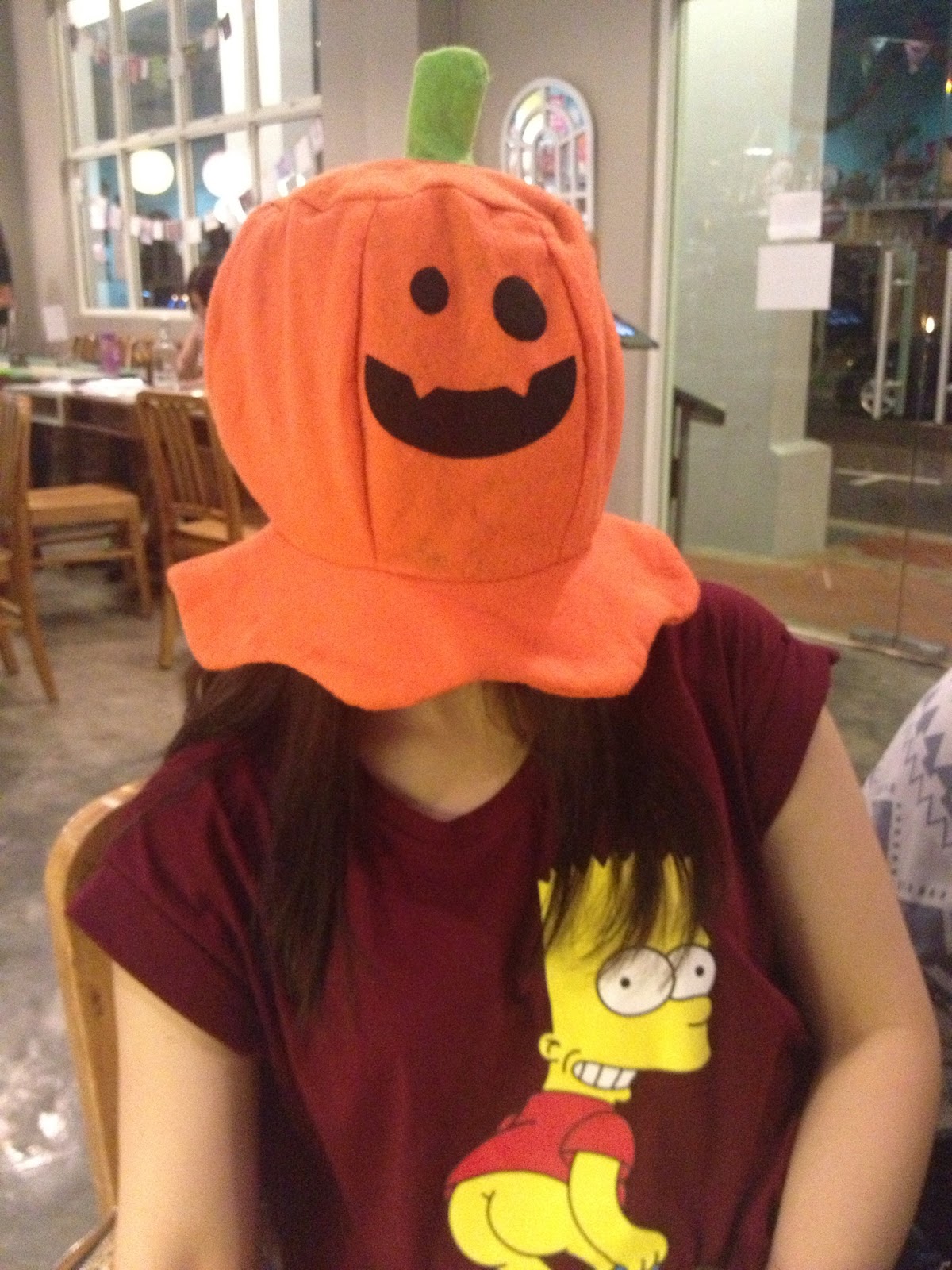 Crazy pumpkin with a porno Simpson t-shirt. Shui lai de?